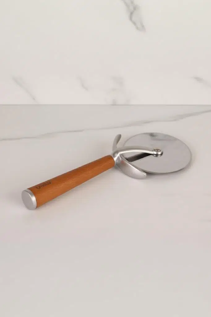 pizza ruleti, pizza bıçağı, pizza kesici, ahşap saplı pizza bıçağı, akasya saplı pizza kesici, Mien Prateg, paslanmaz çelik pizza ruleti, mutfak aleti, pizza servis, lahmacun kesici