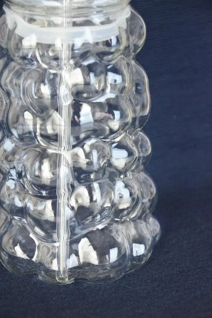Mien’in özgün tasarımıyla hazırlanan üzüm desenli bubble cam bardak, hem estetik görünümü hem de yüksek kaliteli borosilikat cam yapısıyla öne çıkıyor. 1 litrelik geniş hacmi sayesinde su, detoks içecekleri, meyve suları ve soğuk kahveler için ideal. Üstelik birlikte gelen yeniden kullanılabilir cam pipet ile çevre dostu bir seçim yapın.