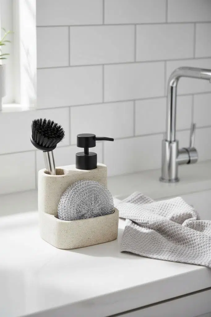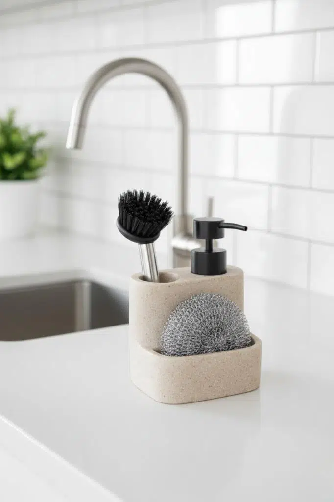 Mutfakta bulaşık deterjanlığı ve sünger düzenleyici