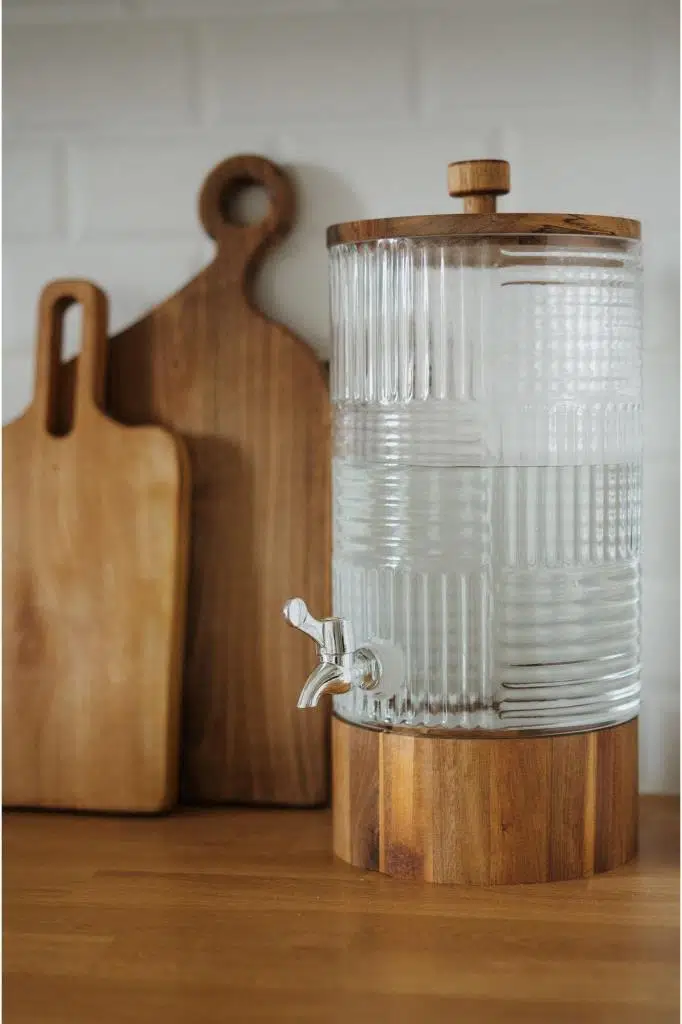 Soğuk içecek servisini şıklıkla buluşturan Zen Akasya Standlı Kapaklı Cam Meşrubat Sebili, 6 litre kapasitesiyle geniş aile toplantıları, davetler ve günlük kullanım için idealdir. Dayanıklı borosilikat cam haznesi, içeceklerinizi sağlıklı bir şekilde saklamanızı sağlarken, doğal Akasya ağacından üretilmiş standı ve kapağı mutfağınıza estetik bir dokunuş katar.
