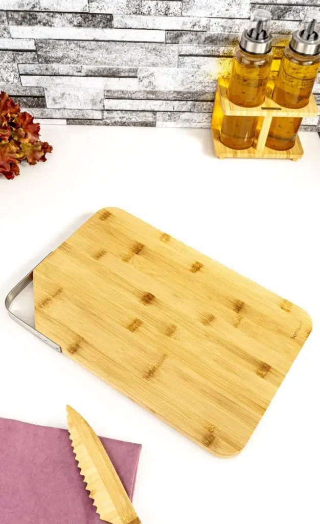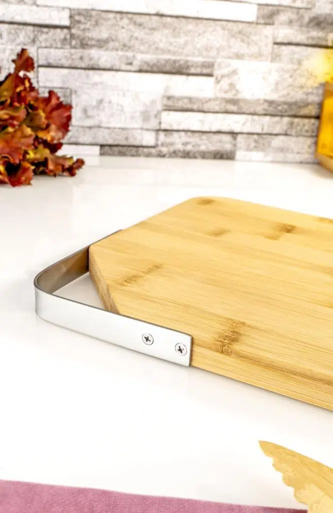 Zoe Çelik Kulplu Dikdörtgen Kesme Tahtası Büyük (38,6 x 25,3 x 2 cm), yemek hazırlarken geniş bir çalışma alanı sunarken aynı zamanda sunumlarınıza da estetik bir dokunuş katar. Mutfağınızın vazgeçilmez parçalarından biri olacak!